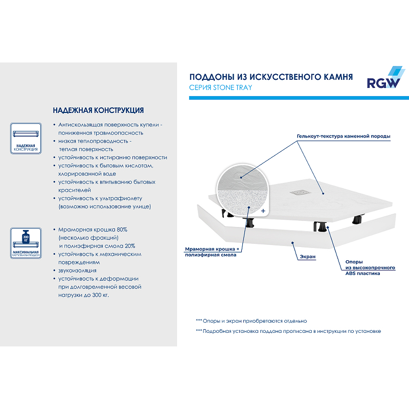 Душевой поддон из искусственного камня RGW Stone Tray ST/T-W 80x80 16155088-01.
