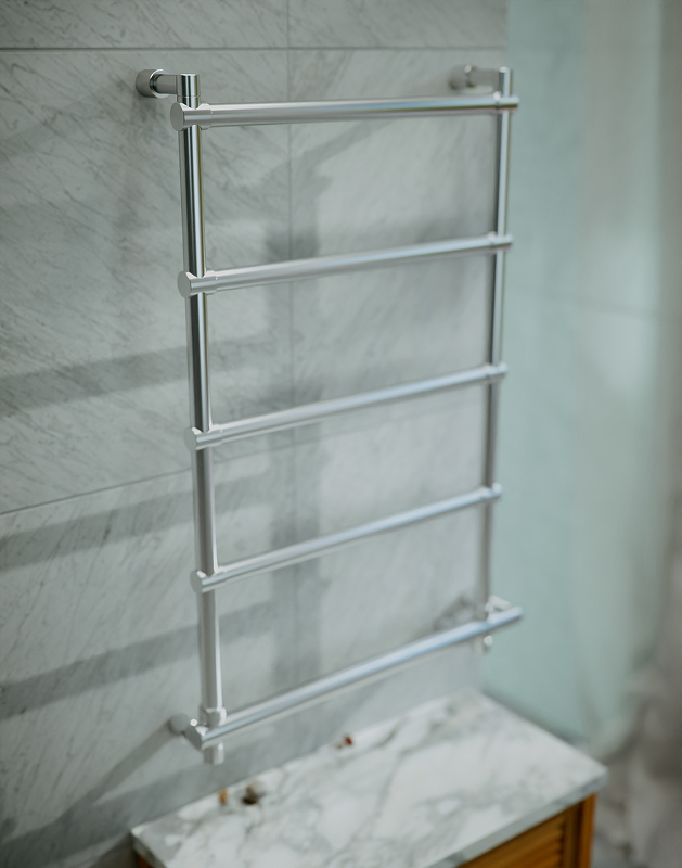 Электрический полотенцесушитель Margaroli 5424705CRNB на 5 секций. Мощность: 100 Вт. Диаметр латунной трубы - 25 мм. Скрытый монтаж включения/выключения (BOX). Расстояние между подсоединениями: 470 мм.Расстояние от стены: 105 мм