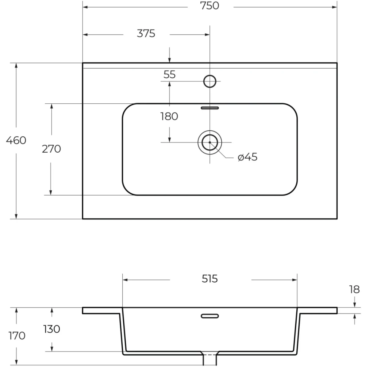 - С отверстием под смеситель.