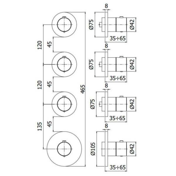 Смеситель Paffoni Ringo RIN015CR для ванны и душа, встраиваемый, с внутренней частью, хром глянцевый