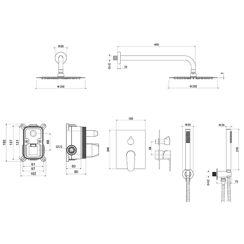 - Душевой шланг из нержавеющей стали SUS304, длиной 1500 мм.