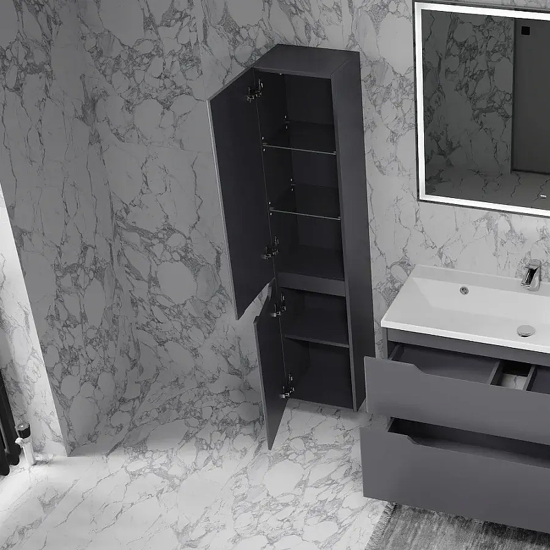 Шкаф пенал AQUAme S3 33 AQM9003GM подвесной. Система хранения: распашная дверца, полки внутри шкафа.