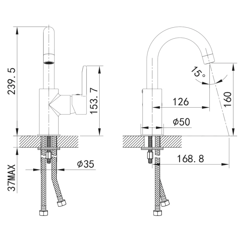 - Гибкая подводка из нетоксичной EPDM резины в оплетке из нержавеющей стали.