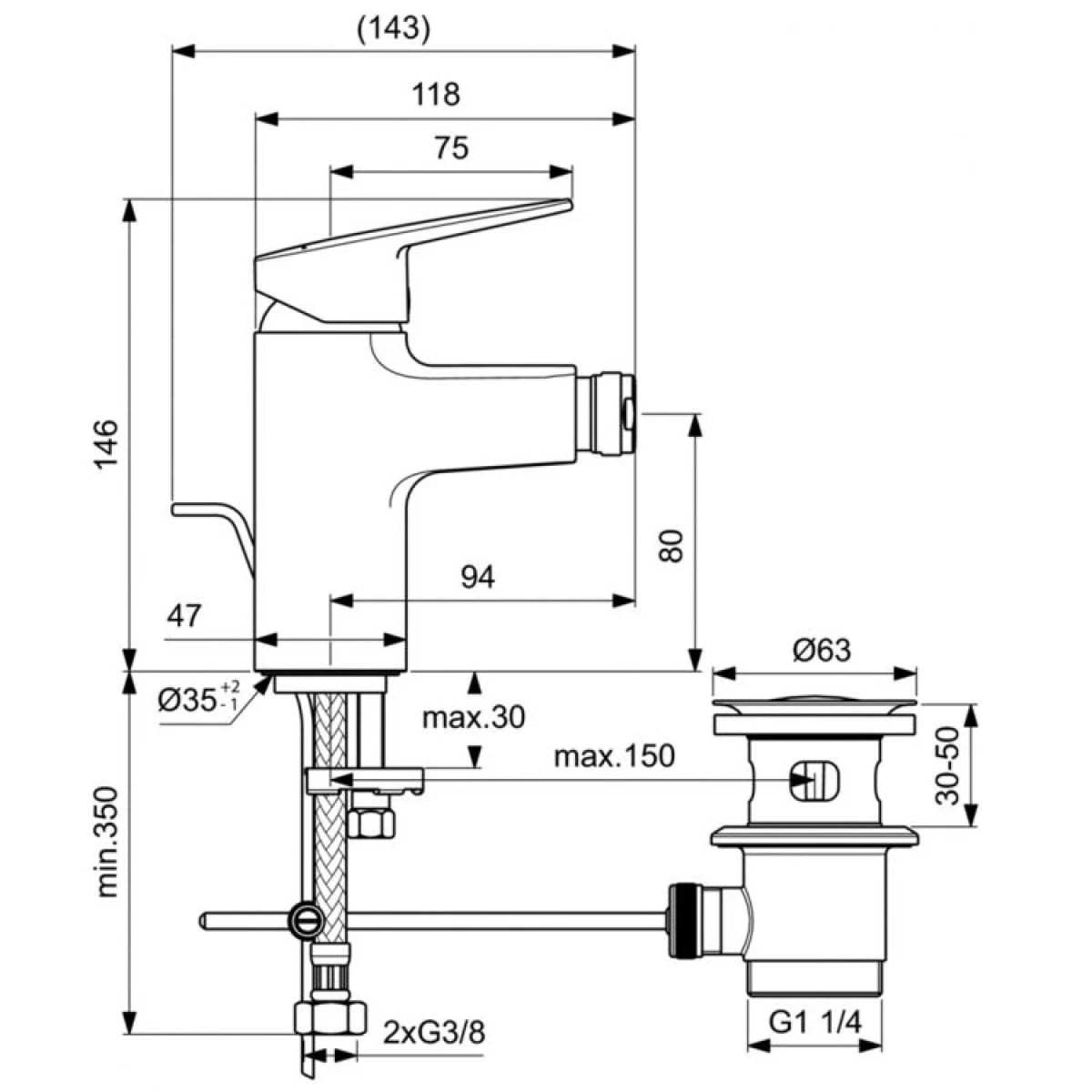 CERAPLAN Смеситель для биде с металлическим донным клапаном, система монтажа EASY-FIX (облегченный монтаж),