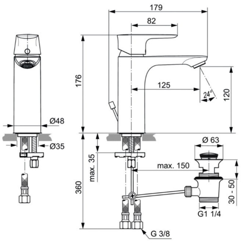 Смеситель Ideal Standard Connect Air Grande Project для раковины, хром, A7053AA