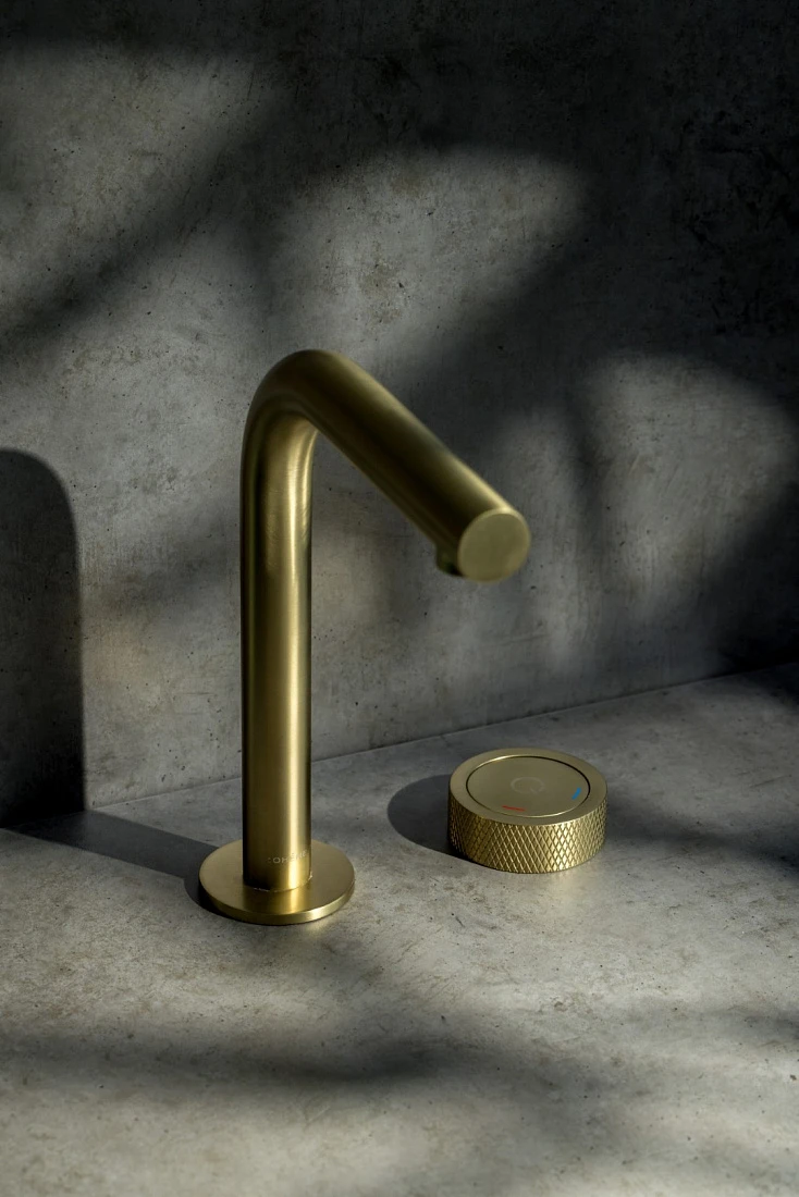 - Пуск воды осуществляется путем нажатия на кнопку, регулировка температуры - путем поворота рукоятки.