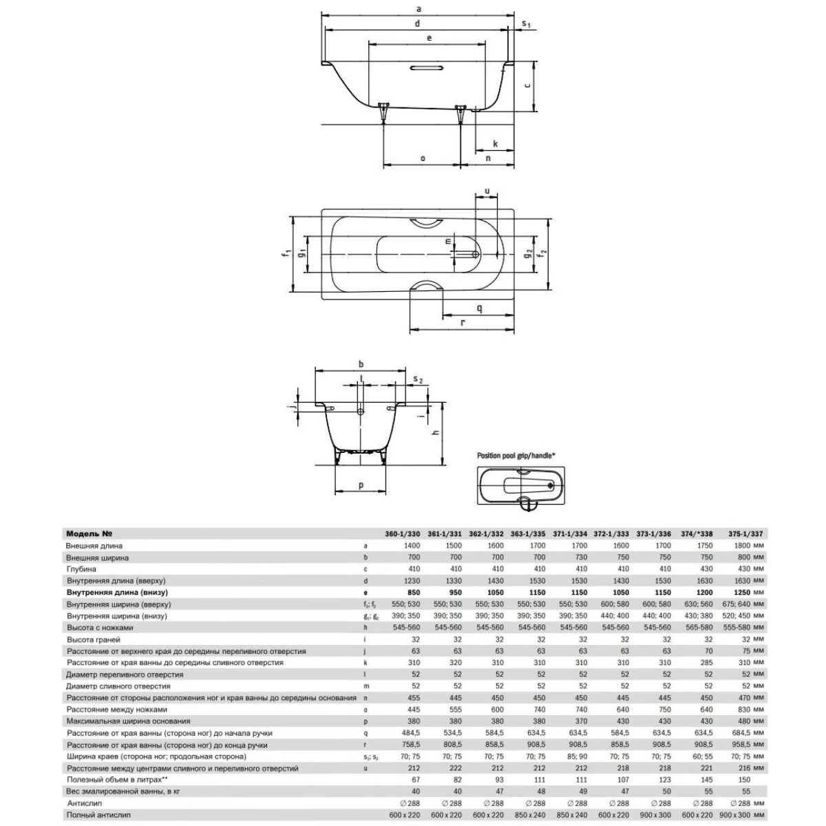 - Ножки для ванны приобретаются отдельно