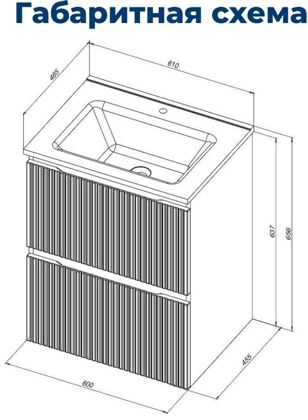- Габариты корпуса тумбы (ШхВхГ): 600х637х455 мм.
