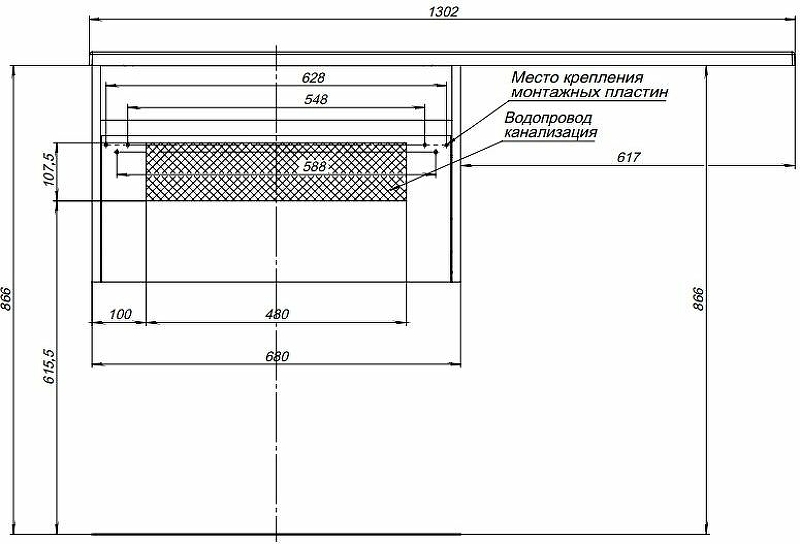 - Габариты раковины (ШxВxГ): 1302x145x482.