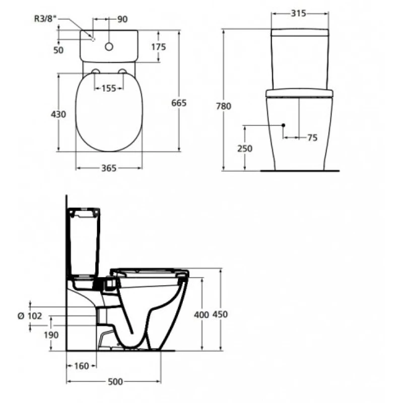 - Габариты чаши унитаза (ШхВхД): 365х400х665 мм.